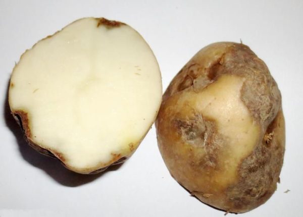 כאשר נגועים פקעות, הפירות מכוסים בכתמים כהים. אם הם נחתכים, בפנים תוכלו למצוא אזורים רקובים.