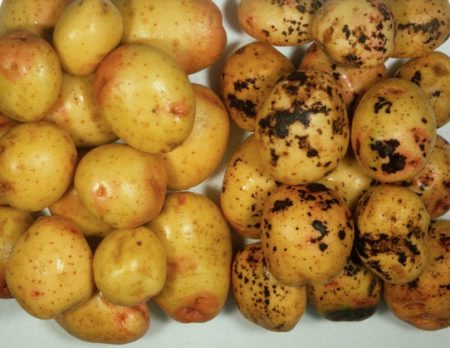 אין לאכול פקעות שנפגעו קשה. על אדמה מזוהמת אל תשתלו תפוחי אדמה עד 7 שנים.