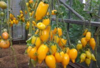 פאנג עגבניות זהוב מתאים לגידול בחממות. זה נבדל על ידי פירות מוארכים של צבע צהוב בהיר, ...