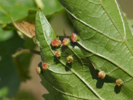 באביב כנימות נקבות ללא כנפיים בוקעות מביצי חורף. הם מאכלסים 1-6 עלי ענבים. עם חילופי הדורות, ויש עד 6 בתנאי מזג אוויר נוחים, הכנימות מתנשאות יותר ויותר לאורך החלק הירוק של הצמח. שם היא פילחה עלה גפן עם הפרובוסקיס שלה, נוצרת גבעה של צבע ירוק עם צורה קעורה. עלה הענבים מאבד את חומרי התזונה שלו ומתייבש. כאשר מזון חרקים מפסיק להספיק, הם עוברים לשיח סמוך.