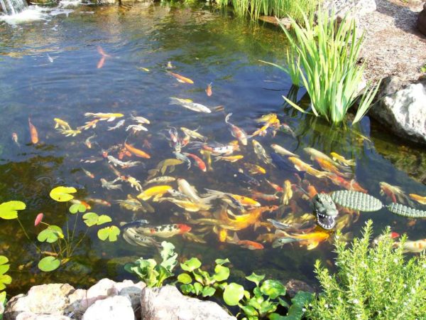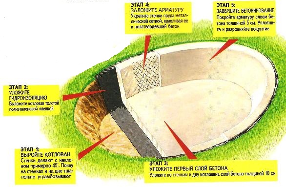 - עבור הקירות והתחתית של הבריכה, יש לבחור את החומר הנכון לדגים. ישנם ציפויים מיוחדים לבריכות מלאכותיות. חול וחצץ מונחים בתחתית המאגר.