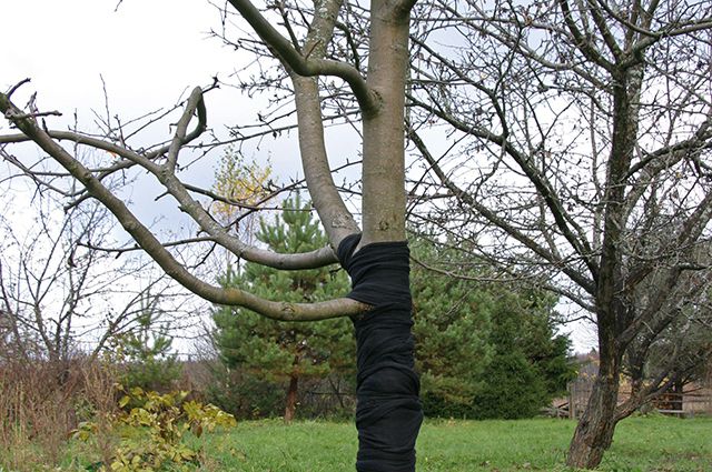 קומפלקס אמצעי הסתיו להגנה על גידולי הגן כולל ניקוי הגזעים והקלעים העיקריים של השכבה הישנה של הקליפה והאזוב. יש לתקן את כל הנזקים. עצי תפוח מגנים מפני הקור כך שירגישו בנוח בחורף. גננים דואגים גם למניעת כוויות שמש מעצים.