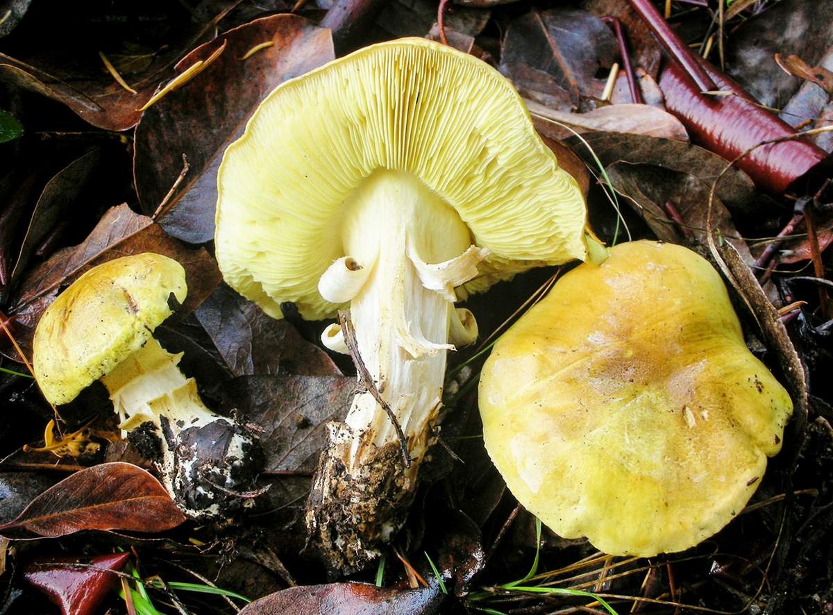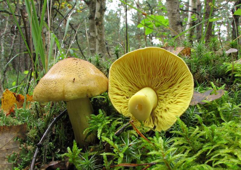 Serushka Lactarius flexuosus - הנבגים הם בצבע קטן, כדורי וצהוב, עם קישוט. אבקת הנבג היא גם צהובה.
