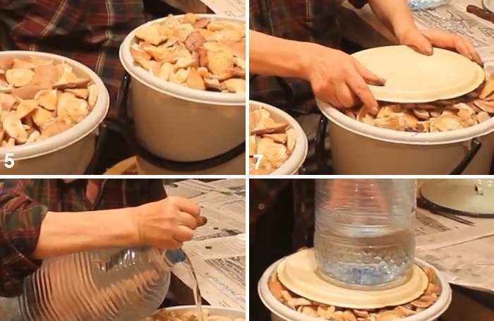 לצורך ההמלחה, עליכם לבשל 2-3 ק"ג פטריות, מלח, פלפלים ושום. לשימוש בארומה השתמשו עלה דפנה, שמיר, ענפי דומדמניות ופרורית. הפטריות מושרות, ואז מייבשות וקלפות בסכין חדה. ואז הם מונחים בחביות עץ אלון. כל המרכיבים מונחים בשכבות, לא לשכוח למלח, לאחר מכן כולם מכוסים ומונחים על גבי הכבישה. הקנה ממוקם במקום קר וחשוך. הפטריות מוכנות לאחר חודש וחצי עד חודשיים.