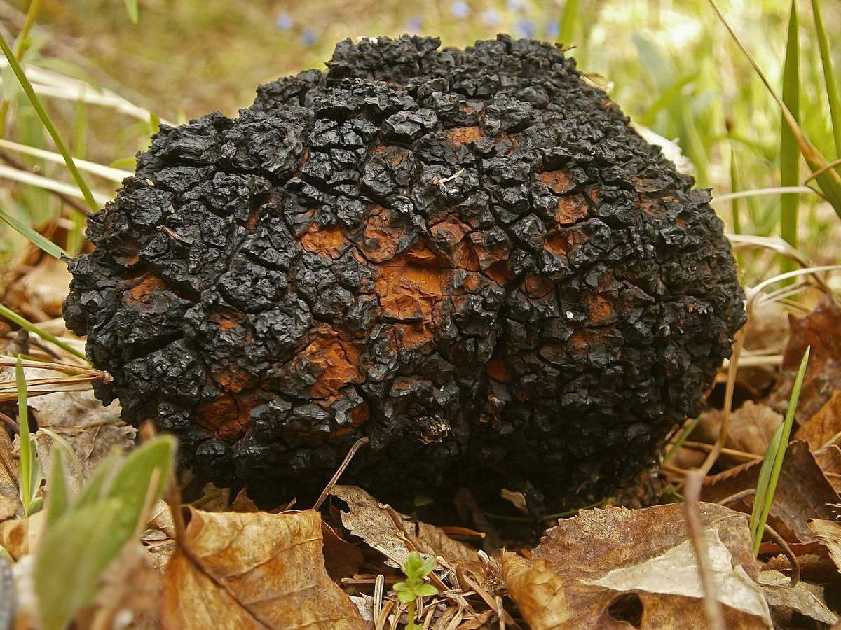 מופיע על קליפת עץ פגועה שנדבקה על ידי נבגים שלה. ניתן לראות את הטפיל בקליפת המוח רק 3-4 שנים לאחר ההדבקה שלו. בתחילה, הצ'אגה נראית כמו צמיחה שחורה ולא מעוצבת, שרק עשר שנים לאחר מכן יוצרת צמיחה בצורת צמיחה. הגידול שחור רק בחוץ, ככל שחלקו קרוב יותר ישירות לקליפת המוח, הוא בהיר יותר.