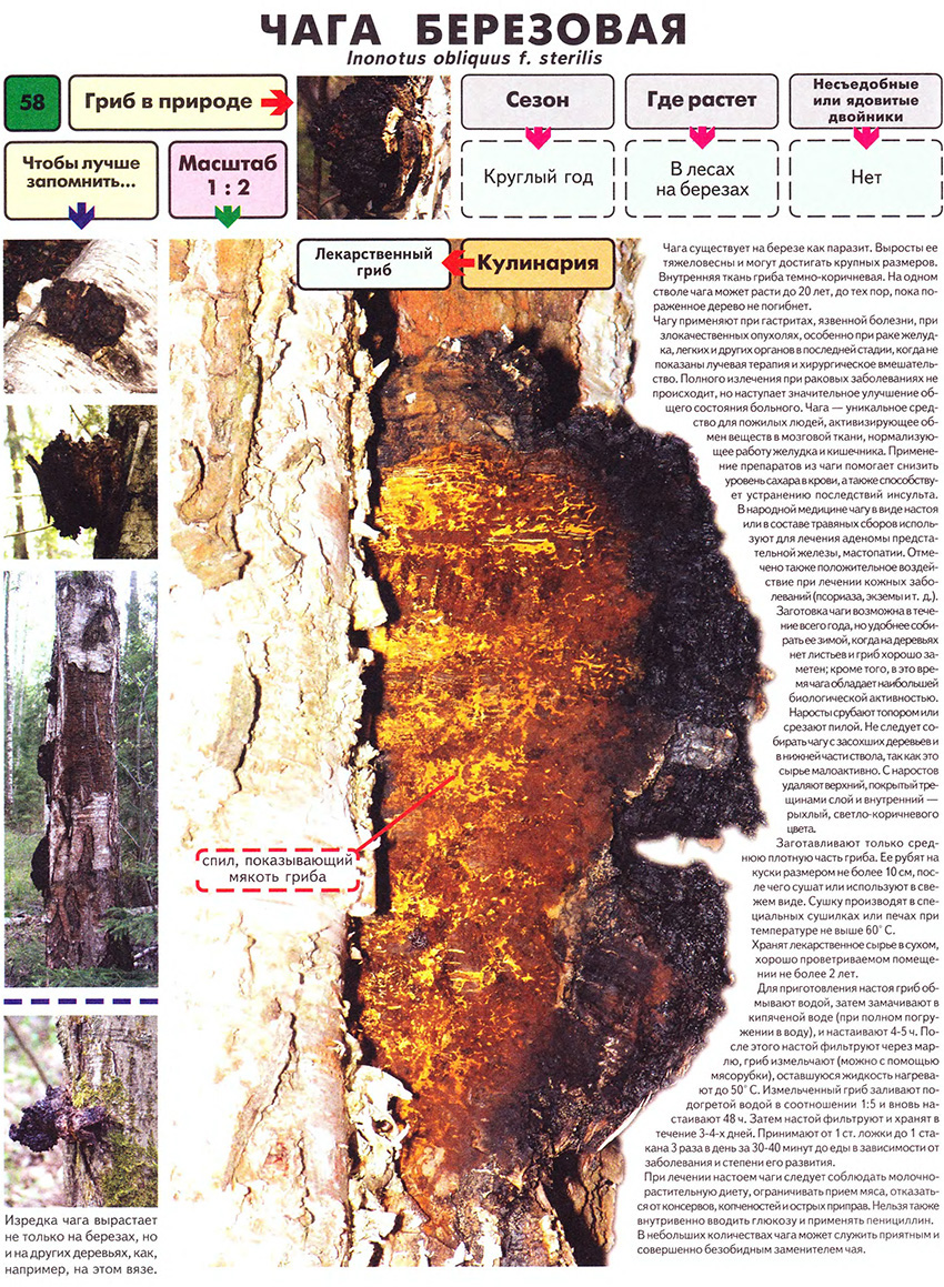 כמו כן, פטריית טונדר אחרת נפרדת די בקלות מהעץ, אך כדי לחתוך את "הצמיחה" המרפאת אתה צריך להתאמץ. כדאי גם לזכור שלצ'אגה יש צבע שחור בניגוד לטנדר השקר.