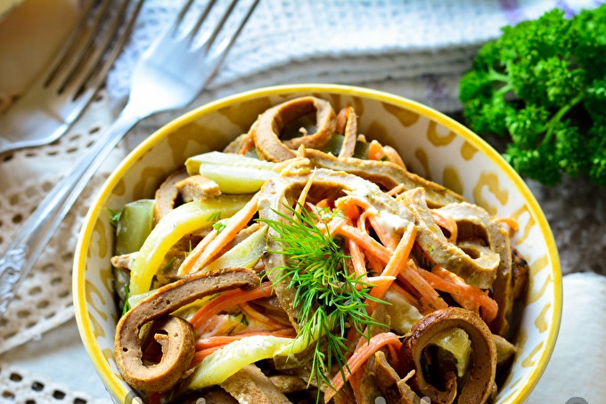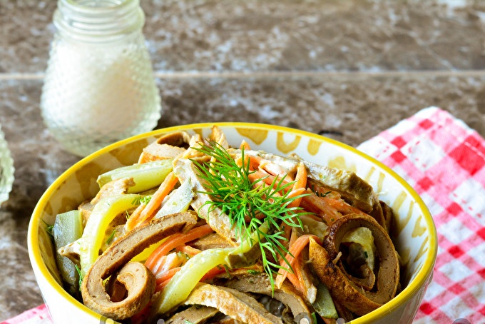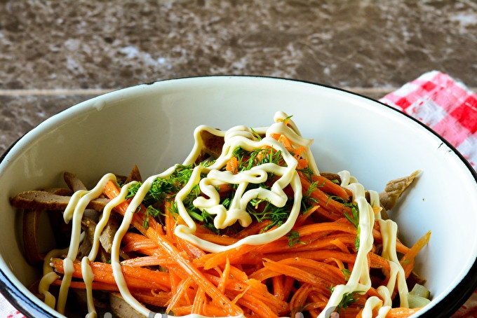 סלט זימושקה עם כבד עוף וגזר קוריאני