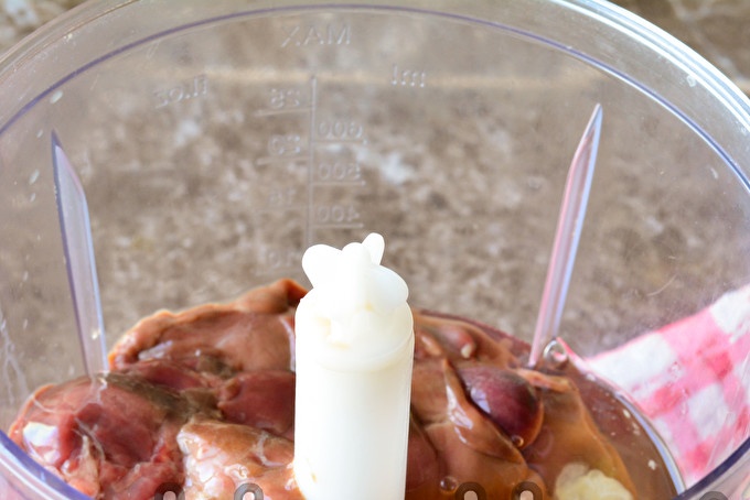 כדי להכין את הסלט, עליכם לטגן את לביבות הכבד מכבד העוף. זה נעשה בפשטות רבה, במיוחד אם יש לך בלנדר. שמים את כבד העוף השטוף בקערת בלנדר. סע גם שם ביצת עוף.
