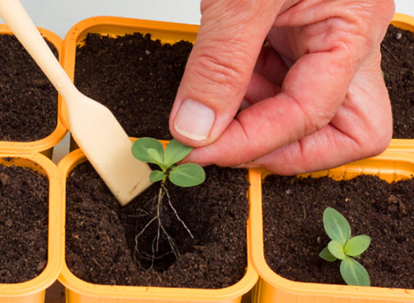 - לאחר הופעתם של שני עלים אמיתיים צוללים שתילי פרחים.
