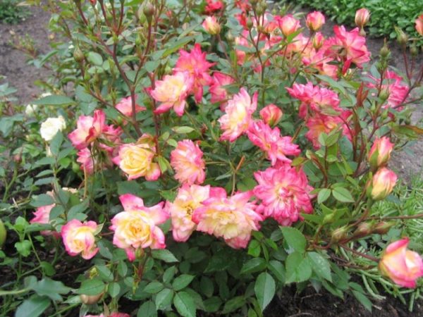 תיקון ורדים עם פרחים בינוניים שנאספו במברשת. בלום בשפע, ממש עד הכפור הראשון. גובה בוש בגובה 30-100 ס"מ.
