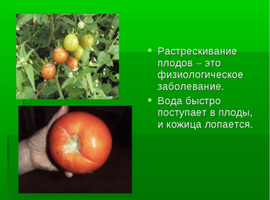 - צבע הפירות הבשלים מתגלה כמיוחד: שוקולד עם פסים ירוקים כהים ואדומים, אך יחד עם זאת עגבניות לא בשלות יש צבע ירוק בהיר;
