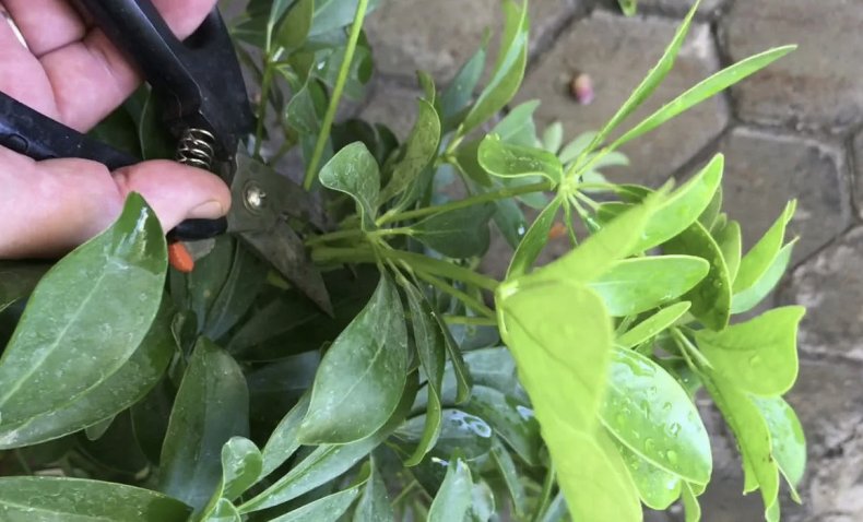 שפלר לא מגיב טוב לגיזום: כדי לשמור על עיצוביות, יש צורך לשתול כמה שתילים מאותו פיתוח וגודל זהה במיכל אחד.