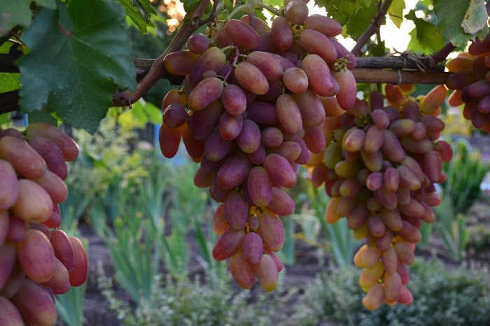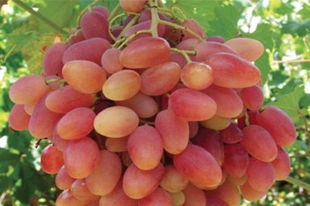 האשכולות טעימים, הם מורכבים מפירות יער גדולים בצורת אליפסה. אורך הפרי כ- 5 ס"מ. המשקל הממוצע הוא 17-20 גר '. הבשלה. הגרגרים צבועים בצבע ורוד בהיר בגוון צהוב קל ומכוסים בציפוי שעווה לבן. צורת העובר גלילית, מצטמצמת לקראת הסוף.