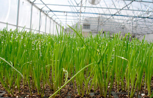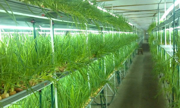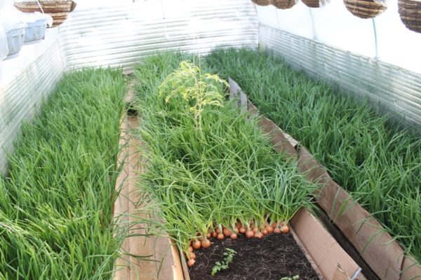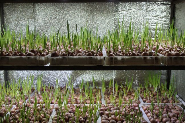 גידול בצל על נוצה בחממה בחורף