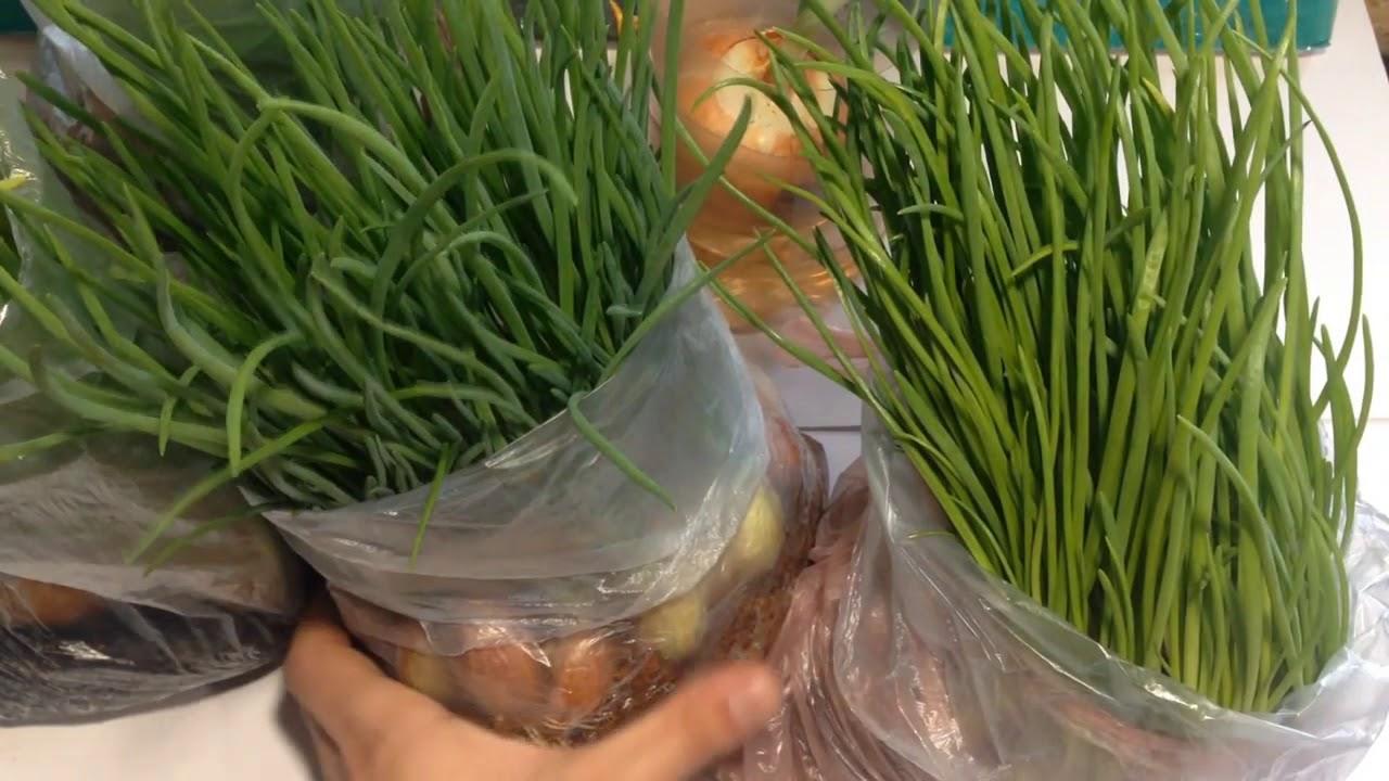 אתה יכול לגדל בצל באדמה סגורה מספר פעמים. לוקח כחודש לזקק חבילה אחת של בצל. לאספקה ירוקה ללא הפרעה נטועים הראשים כל שבועיים מאוקטובר עד אפריל.