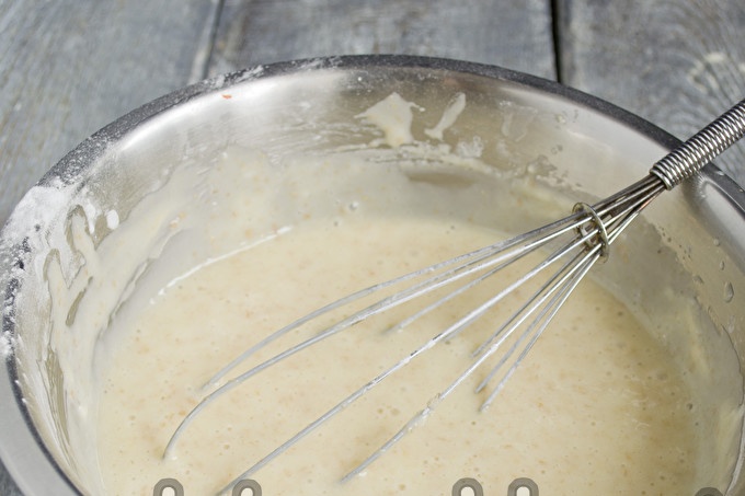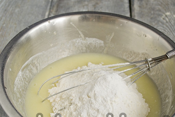 כאשר החומרים הנוזלים מעורבבים לחלוטין, אנו מוסיפים בחלקים הקטנים קמח מלא מלא, כפית אבקת אפייה וסודה לשתייה על קצה הסכין. אינך צריך לכבות סודה, מכיוון שקפיר חמוץ.