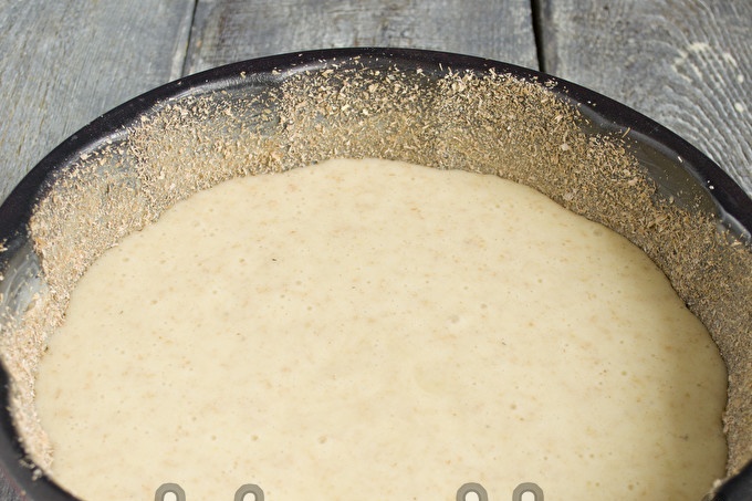 שופכים את הבצק המוגמר לתבנית, מנערים להסרת בועות אוויר.