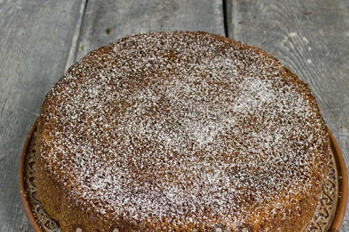 שים את העוגה מקוררת על צלחת ומפזרים אבקת סוכר דרך מסננת דקה. מגישים לתה.
